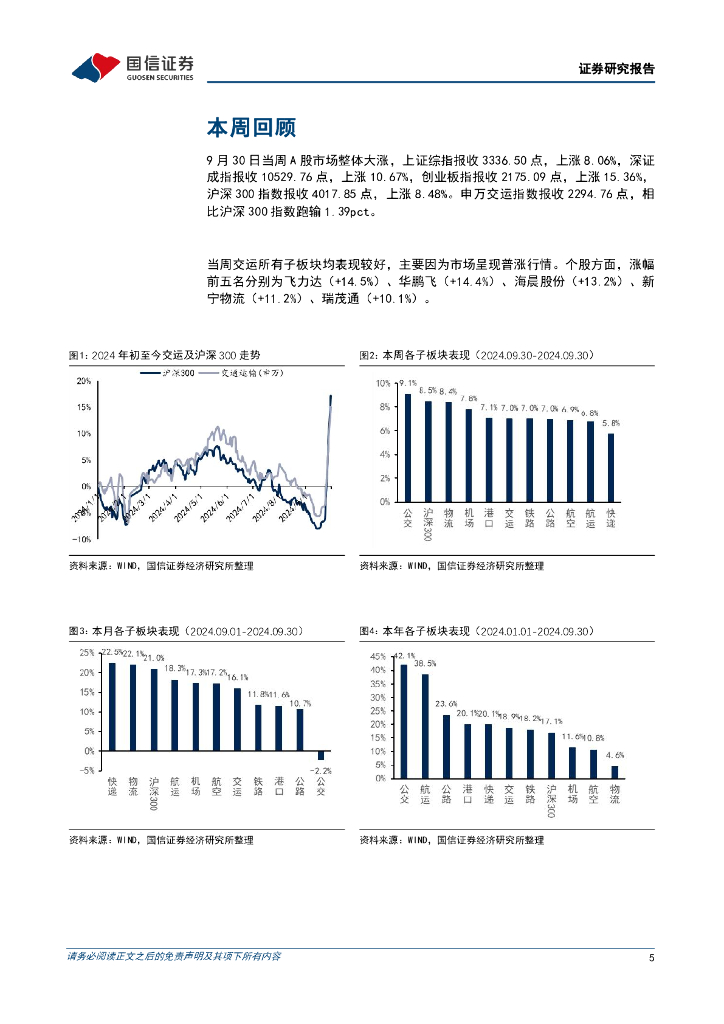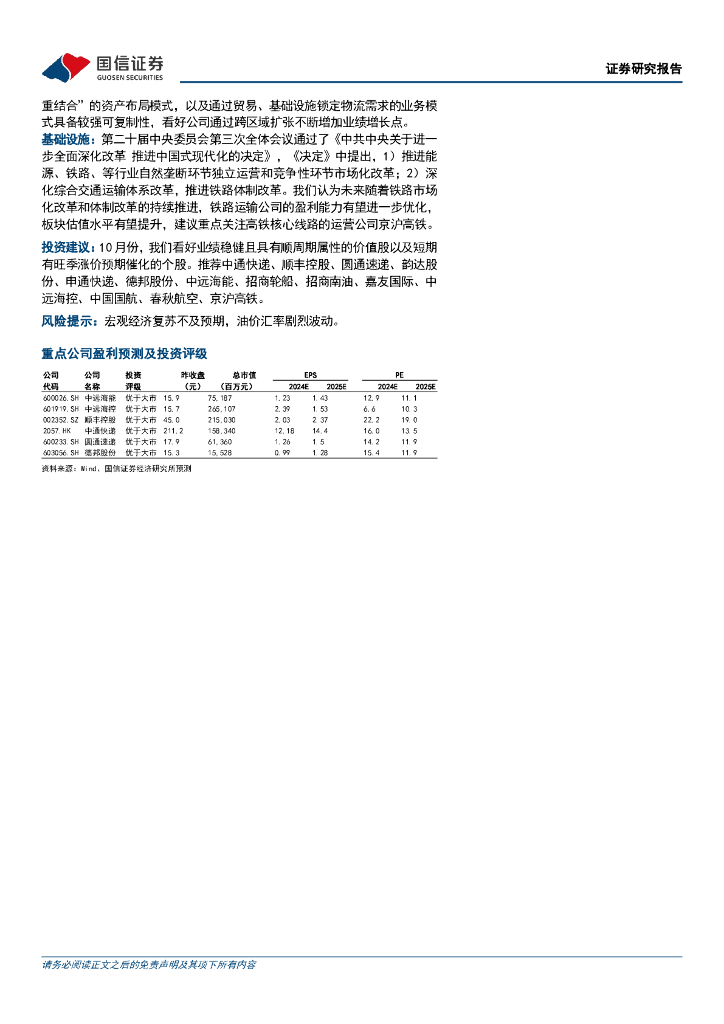 国信证券:交运行业2024年10月投资策略:把握顺周期物流板块的投资机会,关注财政政策对油散的需求影响.pdf