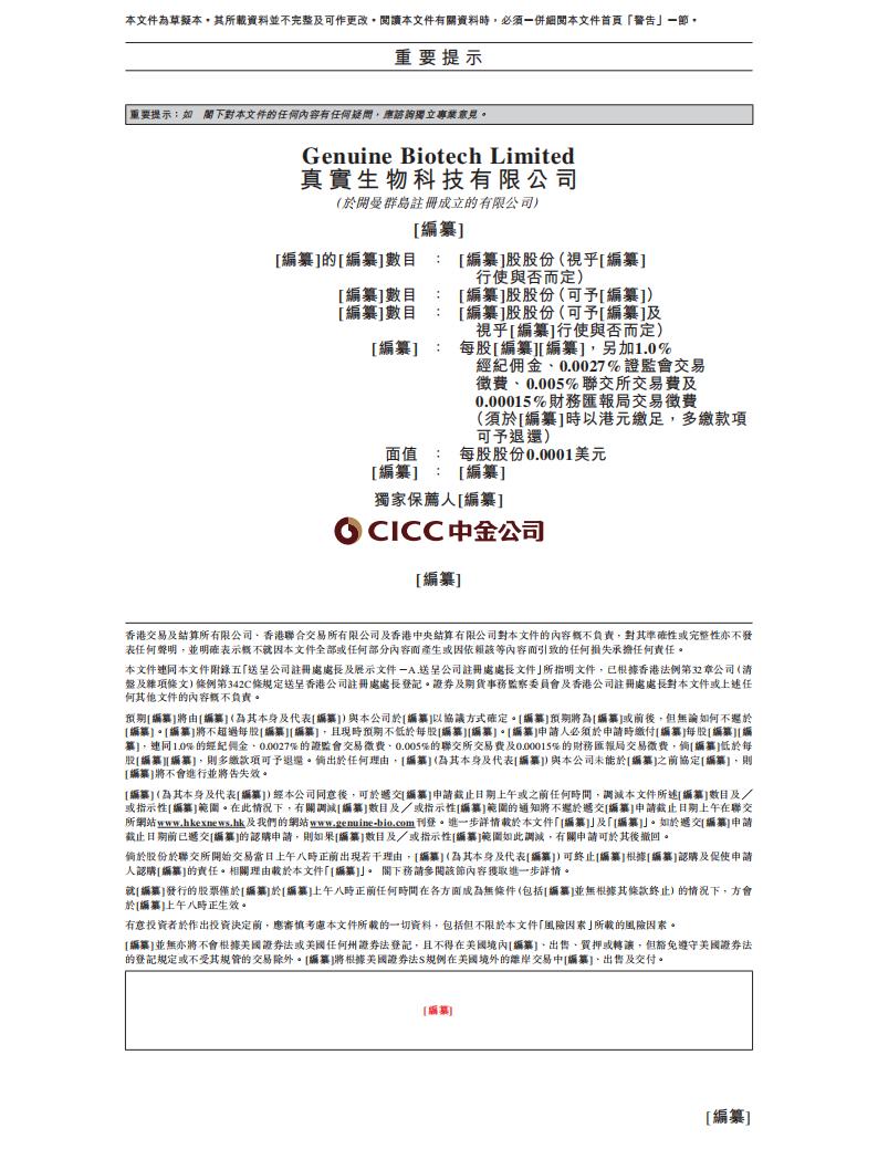 真实生物港交所IPO上市招股说明书:Genuine Biotech获批首款国产新冠口服药.pdf