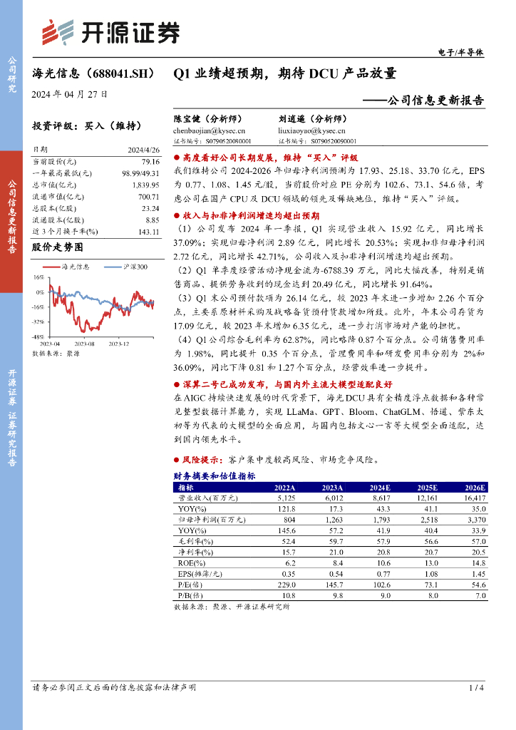 开源证券:海光信息(688041)-公司信息更新报告:Q1业绩超预期,期待DCU产品放量.pdf