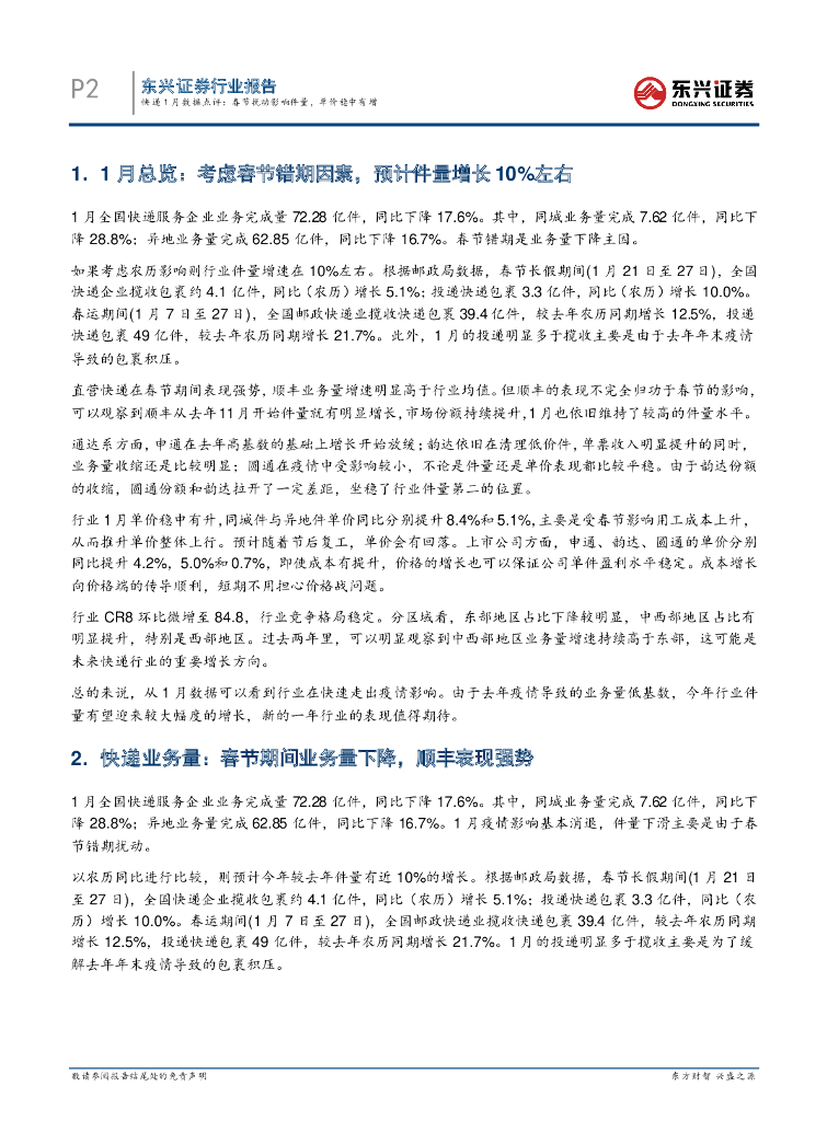 东兴证券:快递1月数据点评:春节扰动影响件量,单价稳中有增.pdf