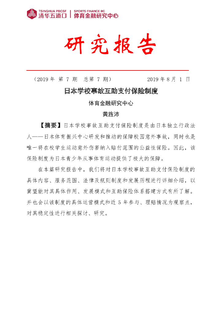 清华五道口&体育金融研究中心:2019年第7期日本学校事故互助支付保险制度研究报告.pdf