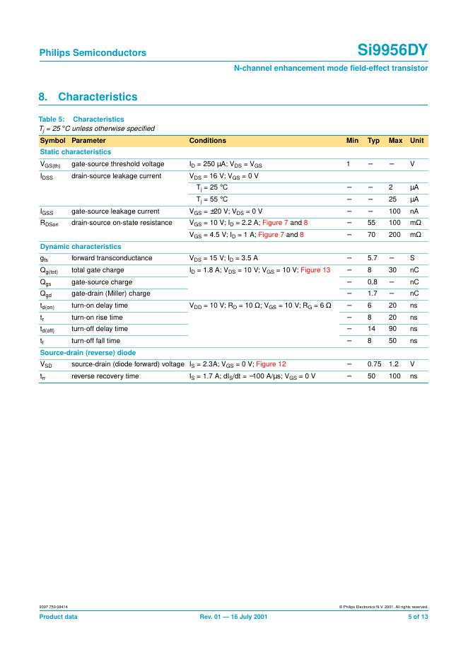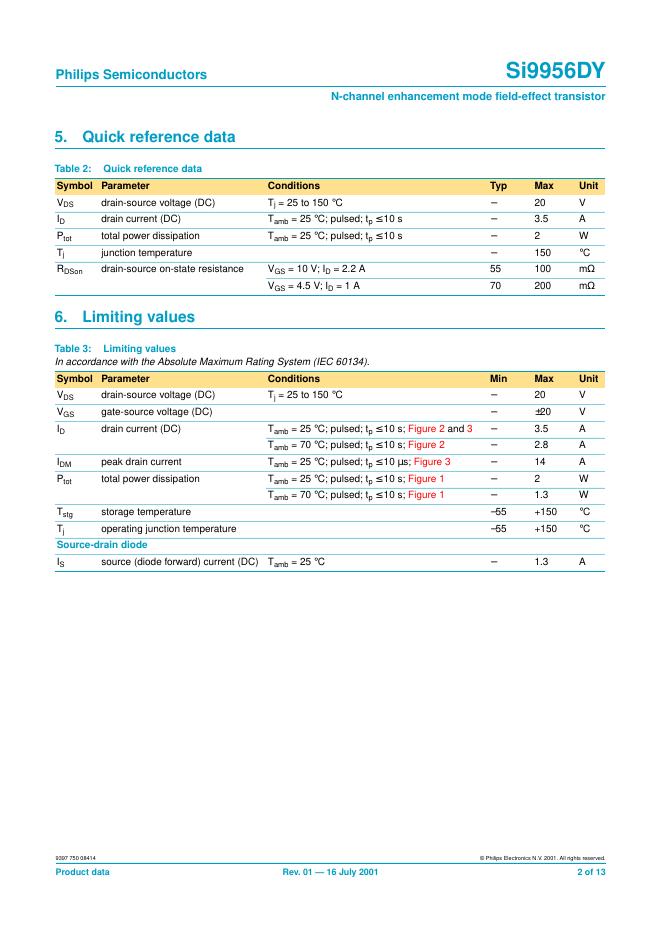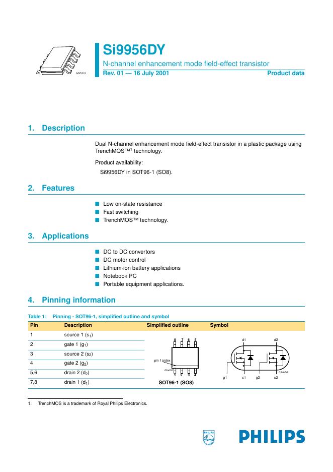 philips Si9956DY N-channel enhancement mode field-effect transistor 数据手册.pdf