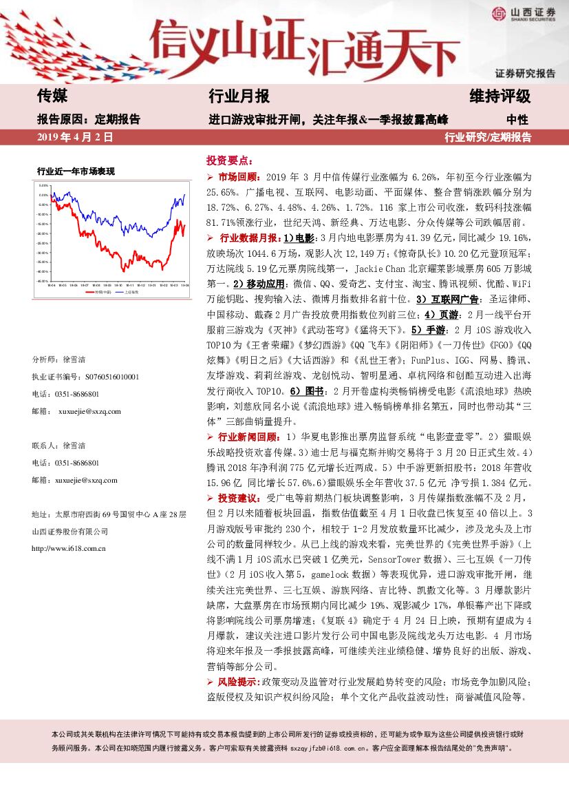 山西证券:传媒行业月报:进口游戏审批开闸,关注年报&一季报披露高峰.pdf