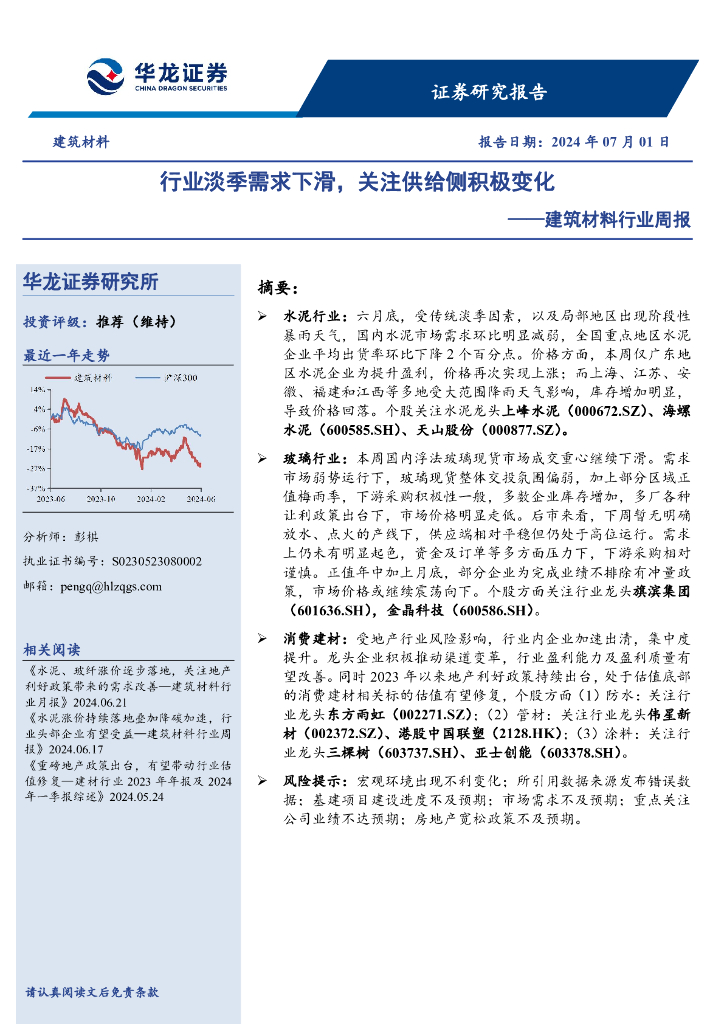 华龙证券:建筑材料行业周报:行业淡季需求下滑,关注供给侧积极变化.pdf