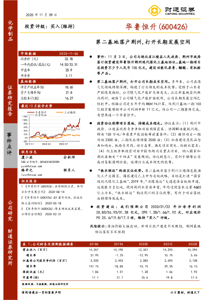 财通证券:华鲁恒升(600426)-第二基地落户荆州,打开长期发展空间.pdf