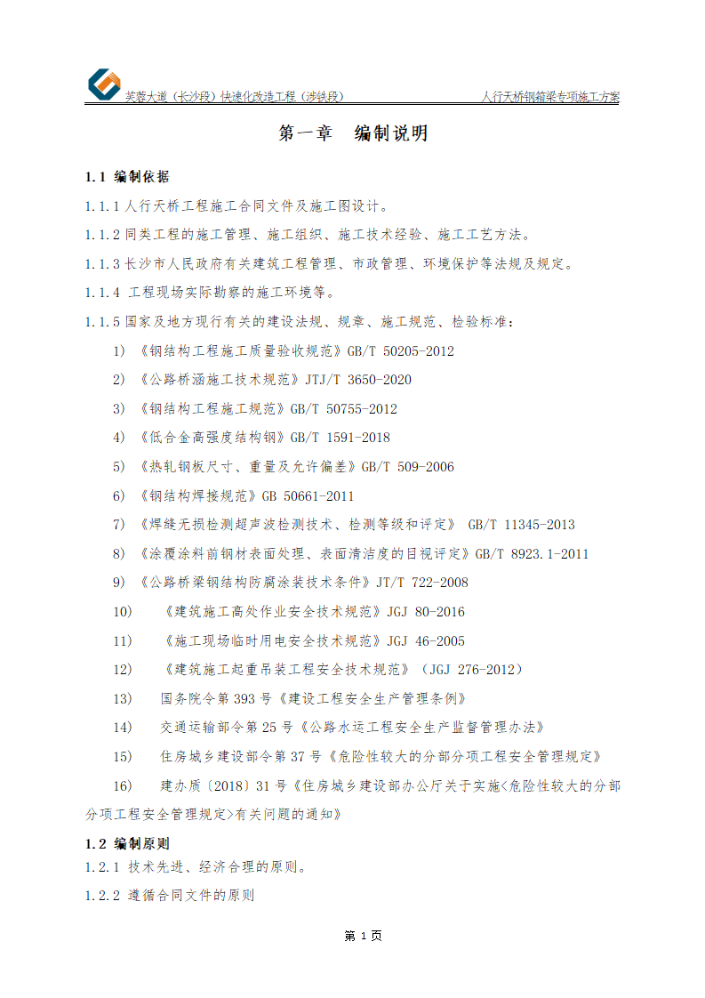 人行天桥钢箱梁专项施工方案112页Word.doc