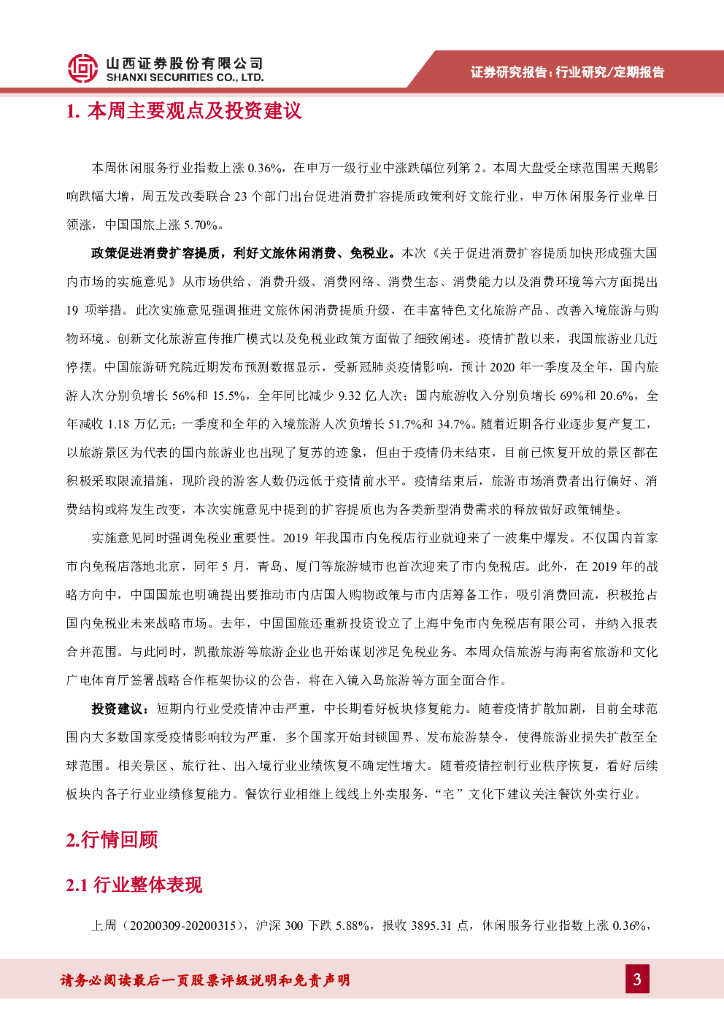 山西证券:社会服务行业周报:政策促进消费扩容提质,利好文旅休闲消费、免税业.pdf