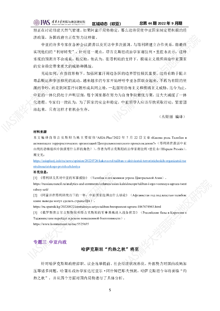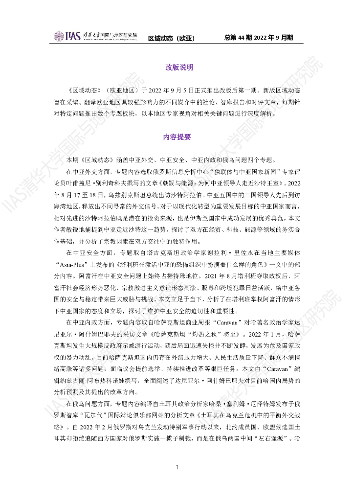 清华大学国际与地区研究院:欧亚地区《区域动态》2022年9月期.pdf