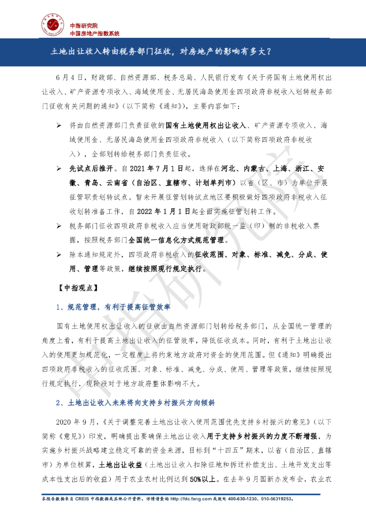 中国指数研究院:房地产行业:土地出让收入转由税务部门征收,对房地产的影响有多大?.pdf