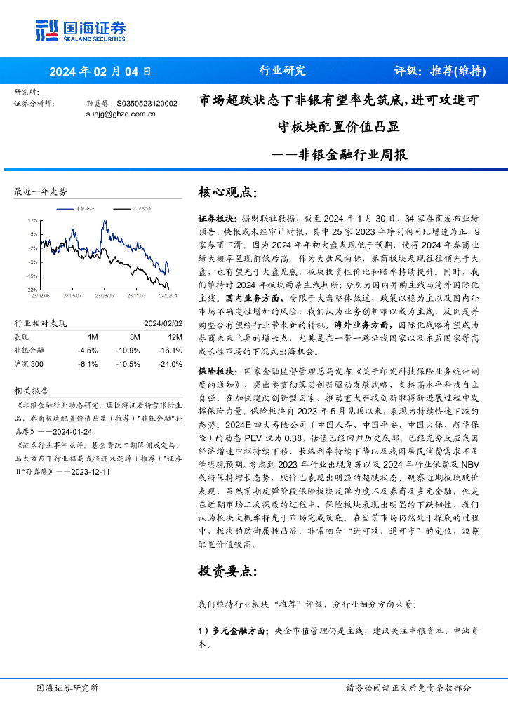 国海证券:非银金融行业周报:市场超跌状态下非银有望率先筑底,进可攻退可守板块配置价值凸显.pdf