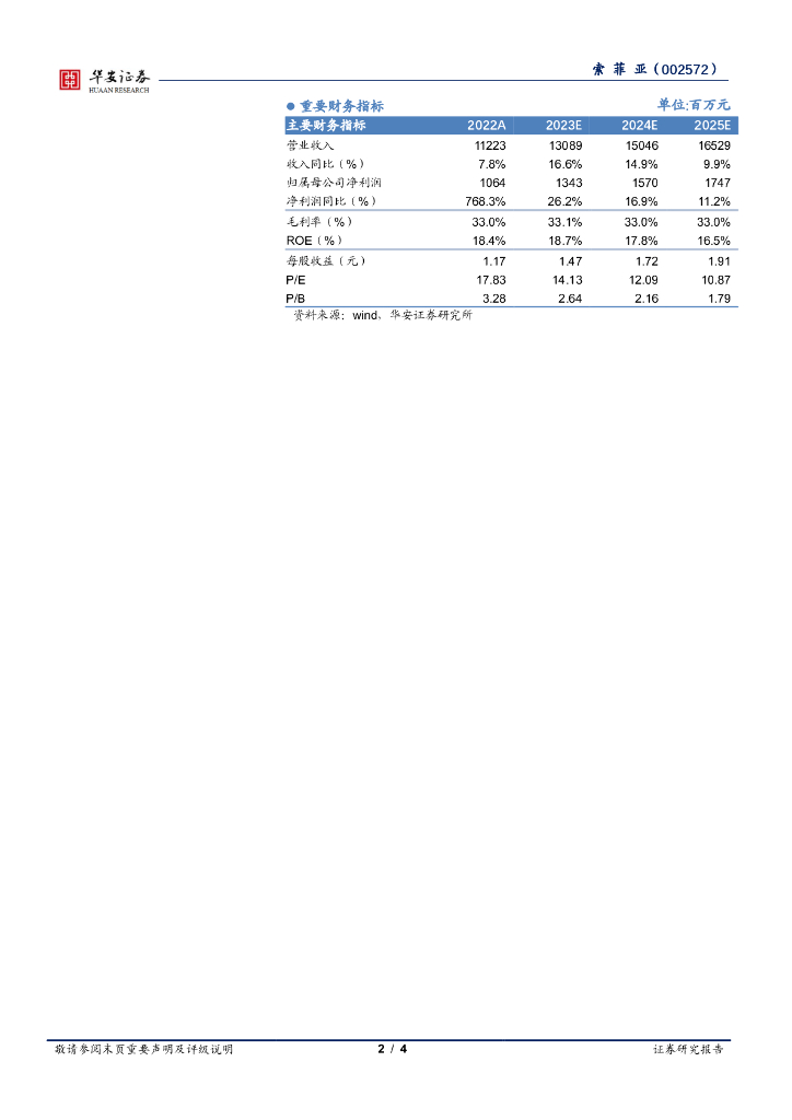 华安证券:索菲亚(002572)-利润率改善,23Q1整装渠道收入同增78.4%.pdf