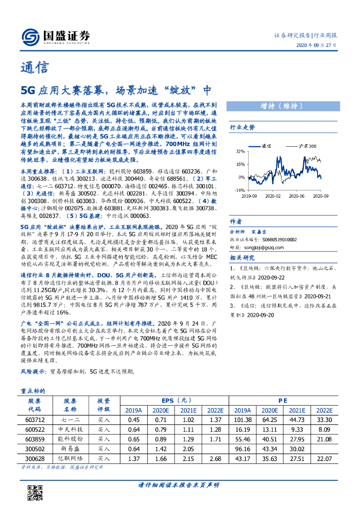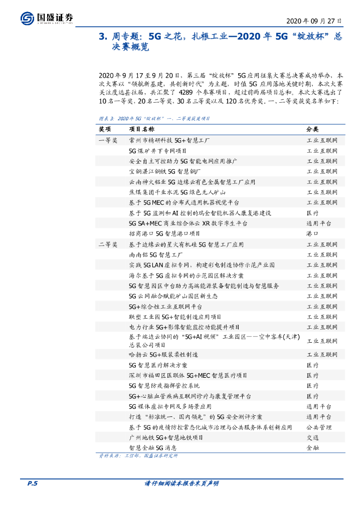 国盛证券:通信行业周报:5G应用大赛落幕,场景加速“绽放”中.pdf