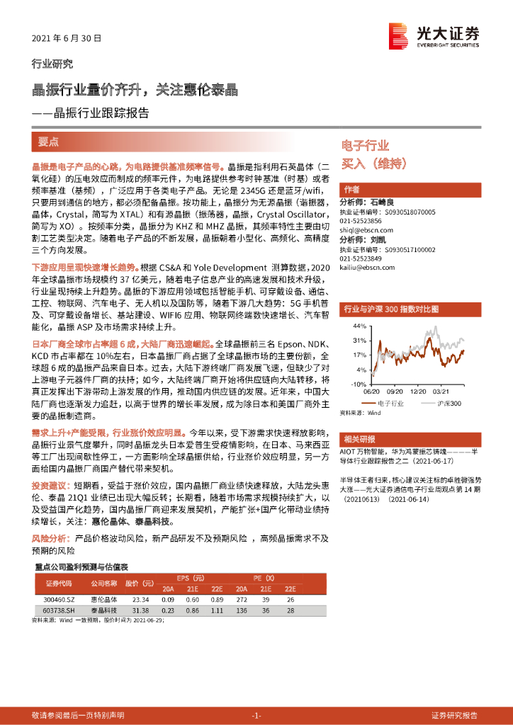 光大证券:晶振行业跟踪报告:晶振行业量价齐升,关注惠伦泰晶.pdf