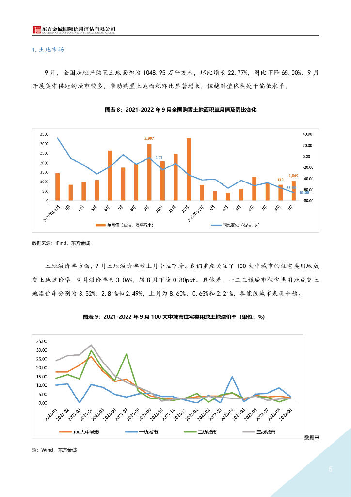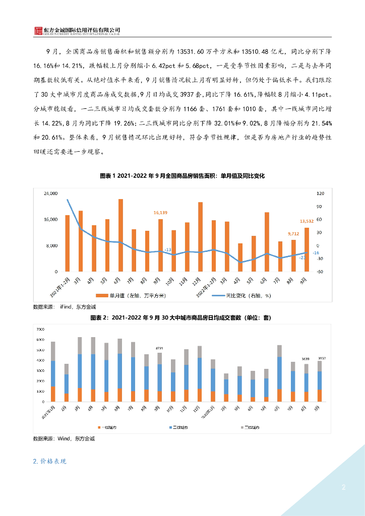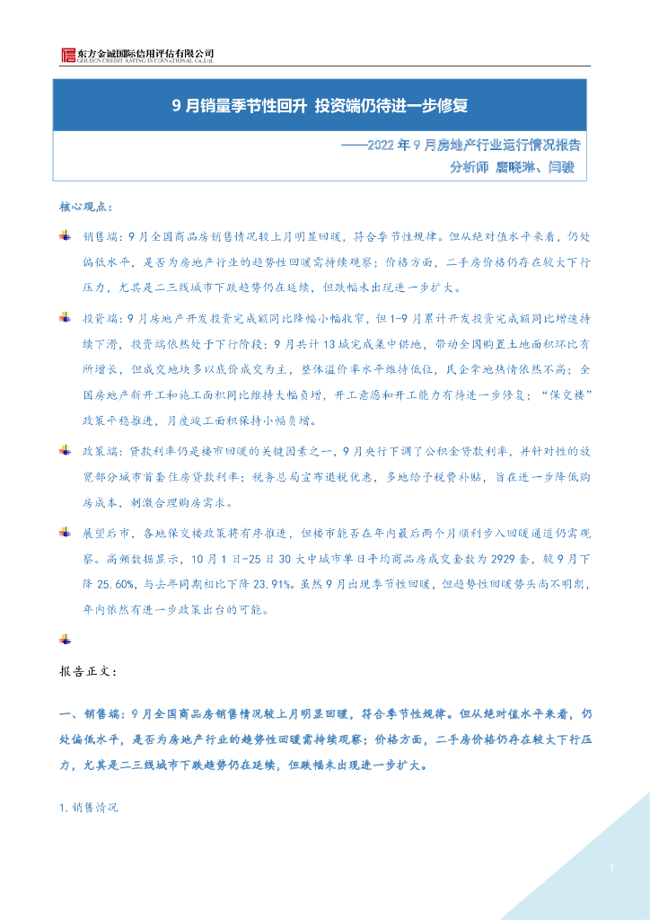 东方金诚:2022年9月房地产月报-9月销量季节性回升 投资端仍待进一步修复.pdf