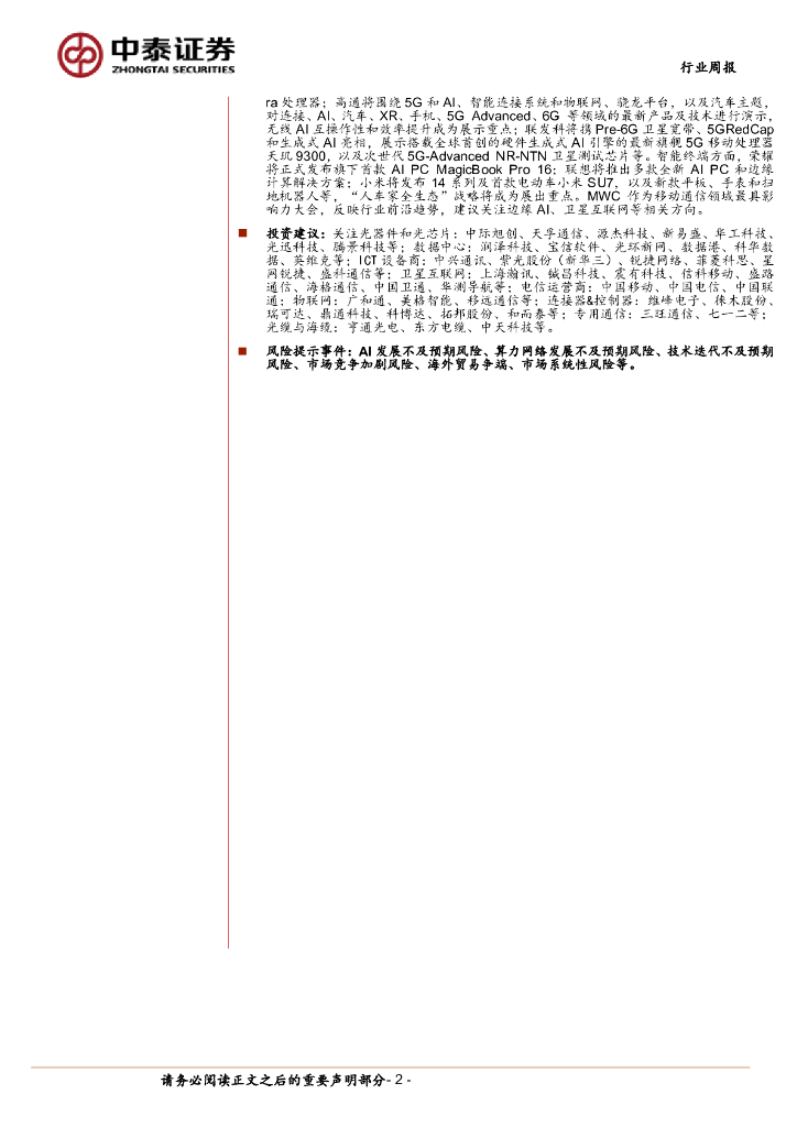 中泰证券:通信行业周报:算力仍是最确定方向,政策支持央企发展AI.pdf