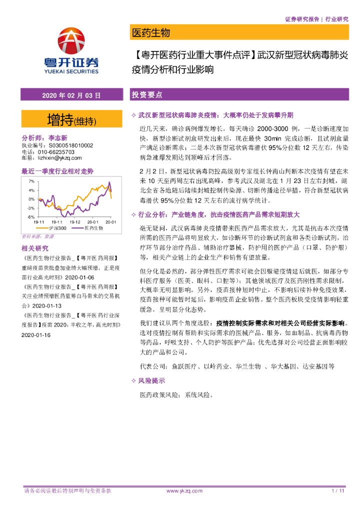粤开证券:【粤开医药行业重大事件点评】武汉新型冠状病毒肺炎疫情分析和行业影响.pdf