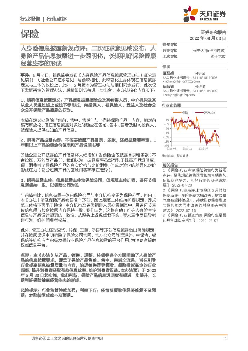 天风证券:人身险信息披露新规点评:二次征求意见稿发布,人身险产品信息披露进一步透明化,长期利好保险健康经营生态的形成.pdf