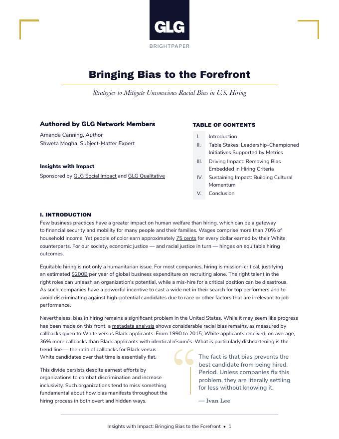 GLG格理集团:2023年将偏见放在首位:减少美国招聘中的无意识种族偏见的策略报告(英文版).pdf