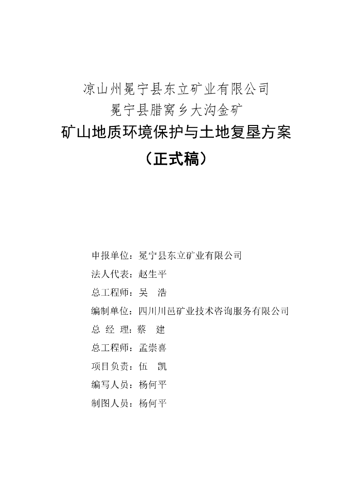 凉山州冕宁县东立矿业有限公司 冕宁县腊窝乡大沟金矿-矿山地质环境保护与土地复垦方案(正式稿).pdf