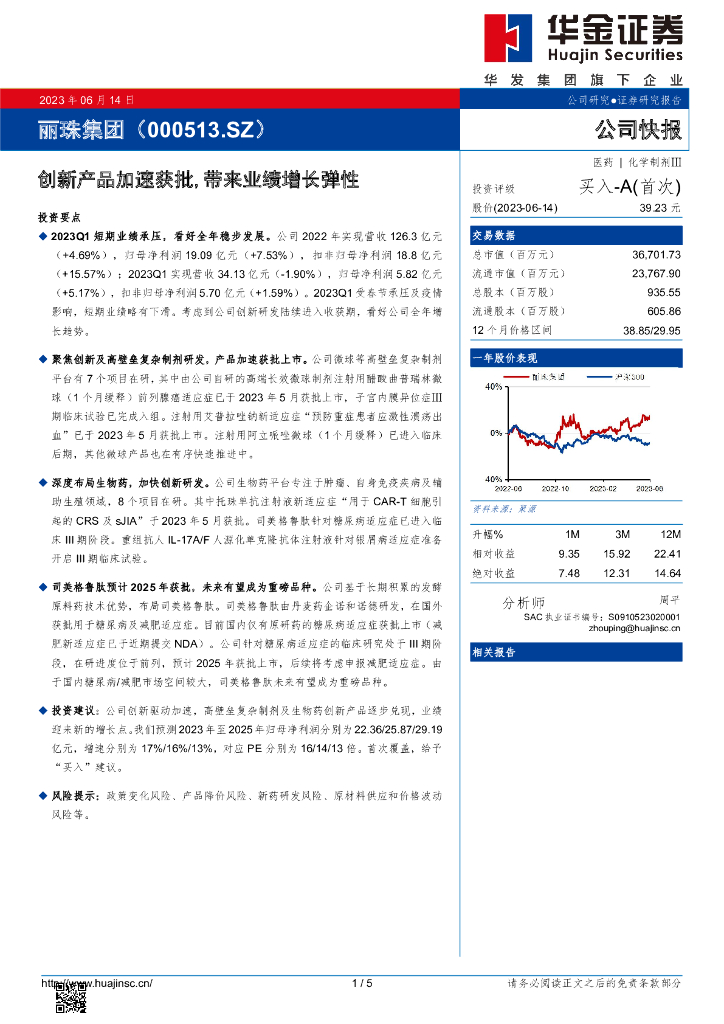 华金证券:丽珠集团(000513)-创新产品加速获批,带来业绩增长弹性.pdf