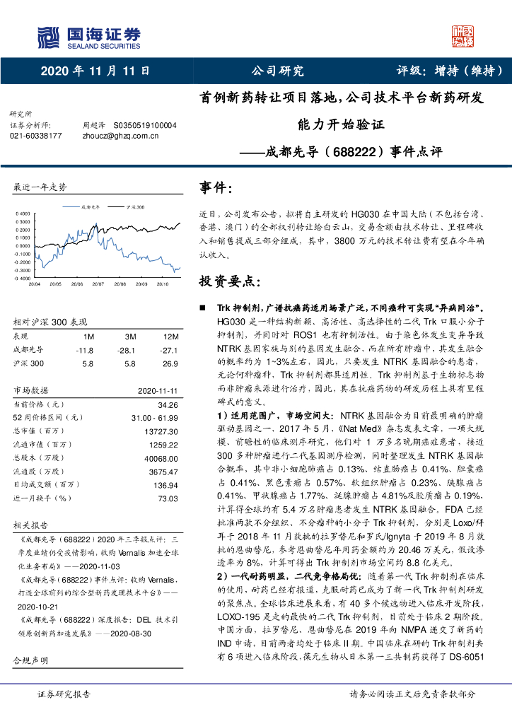 国海证券:成都先导(688222)-事件点评:首例新药转让项目落地,公司技术平台新药研发能力开始验证.pdf