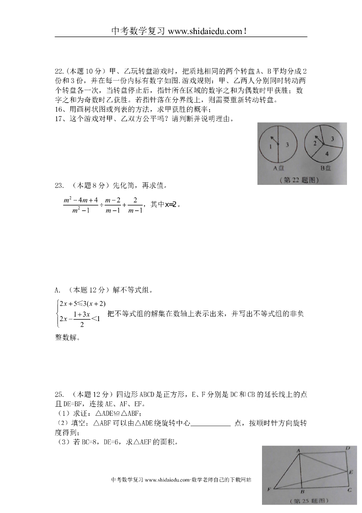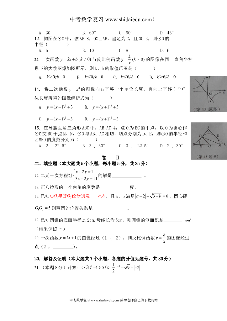 毕节市初中毕业生学业考试(中考)数学真题试卷.doc