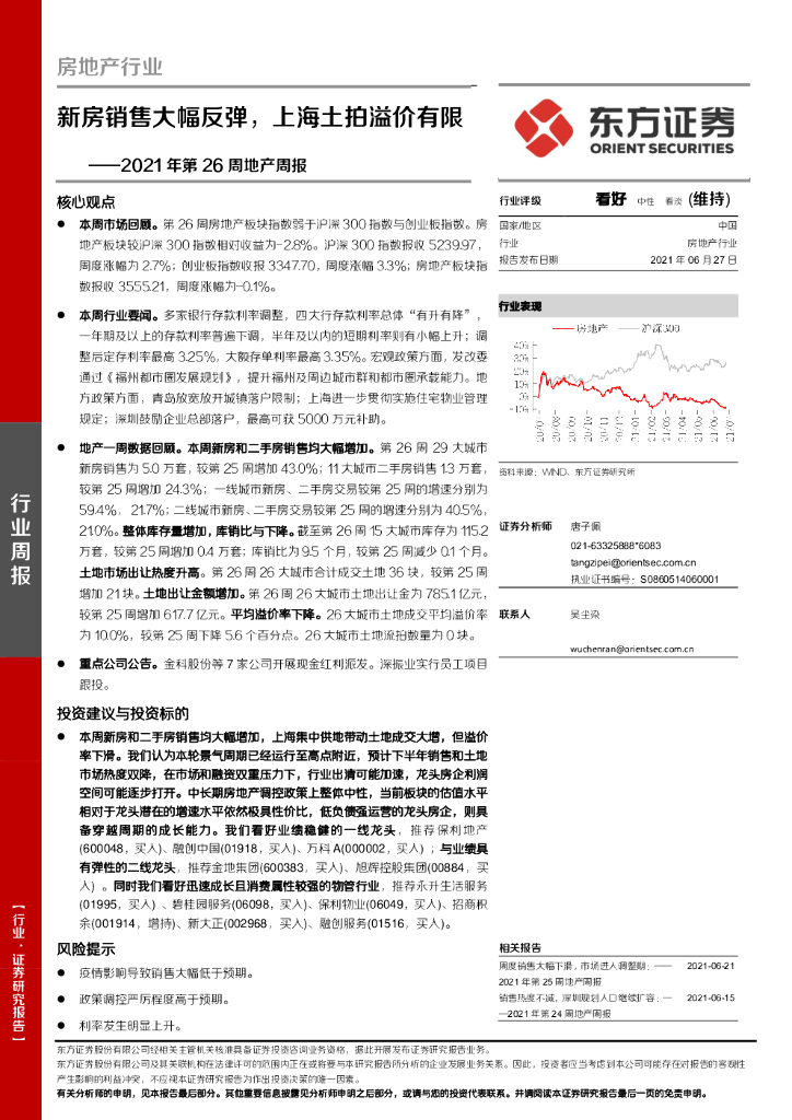 东方证券:房地产行业2021年第26周地产周报:新房销售大幅反弹,上海土拍溢价有限.pdf