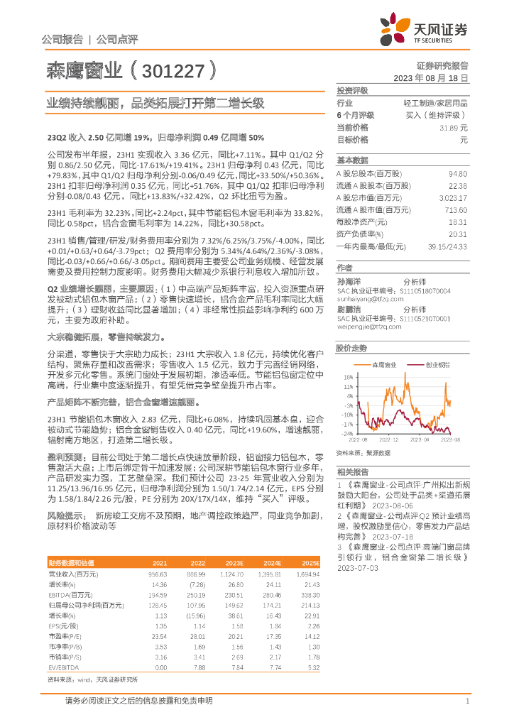 天风证券:森鹰窗业(301227)-业绩持续靓丽,品类拓展打开第二增长级.pdf