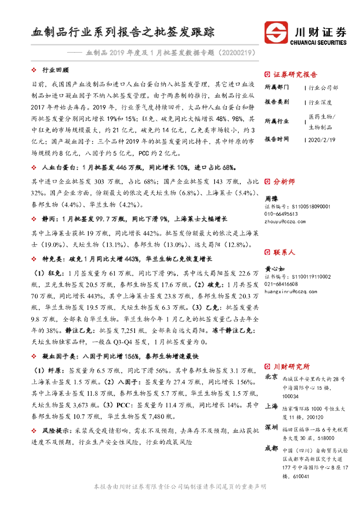 川财证券:血制品2019年度及1月批签发数据专题:血制品行业系列报告之批签发跟踪.pdf