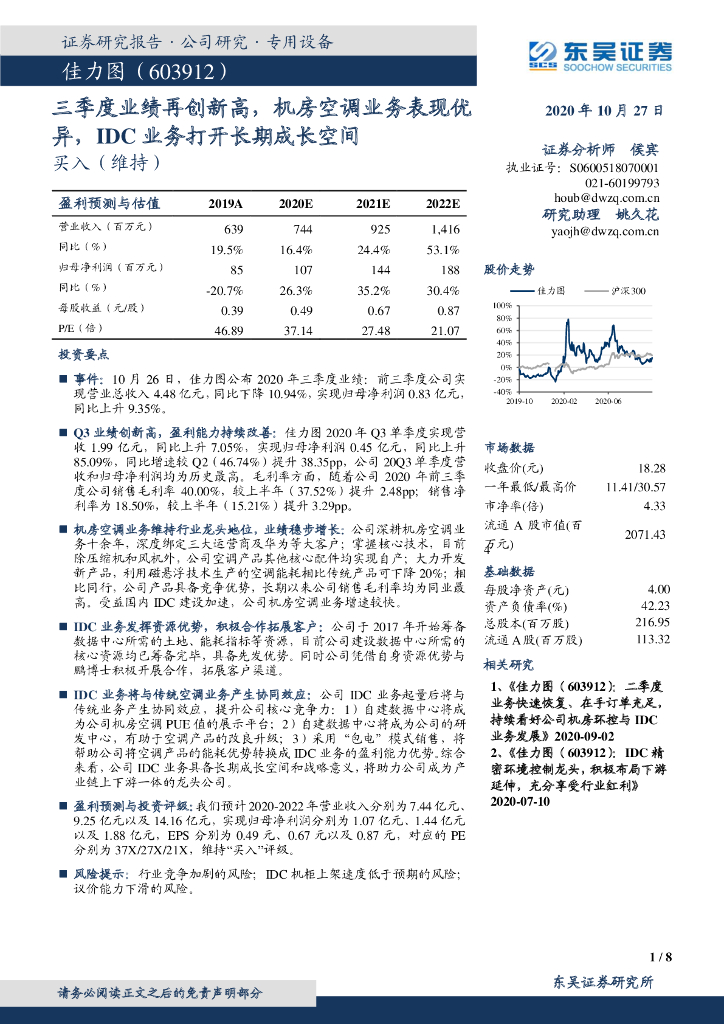 东吴证券:佳力图(603912)-三季度业绩再创新高,机房空调业务表现优异,IDC业务打开长期成长空间.pdf