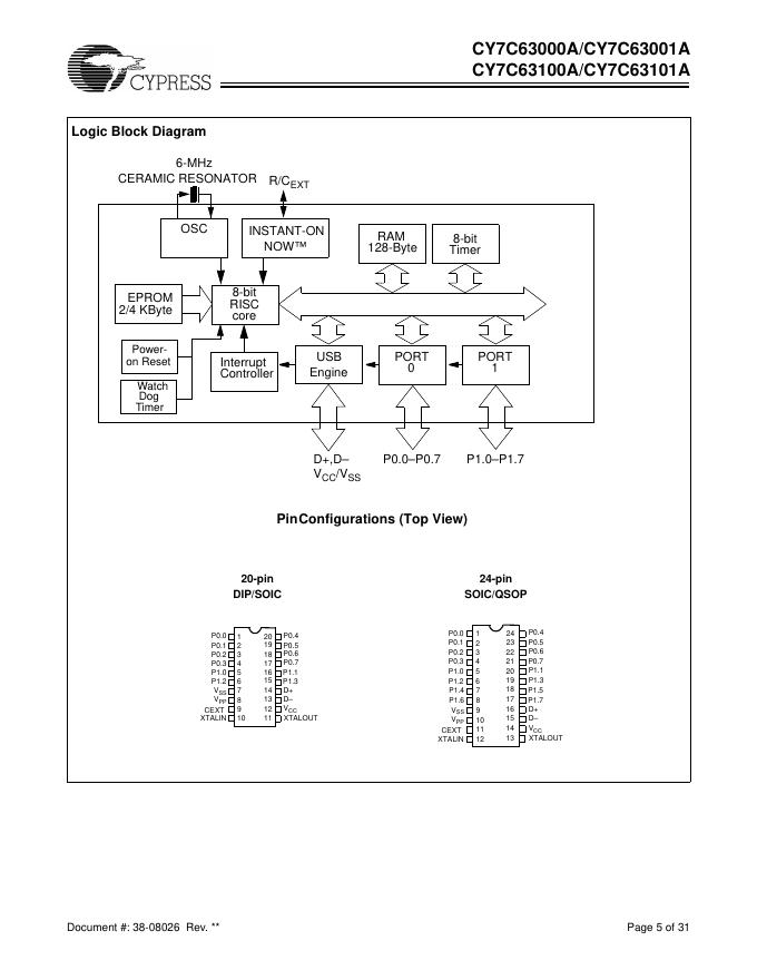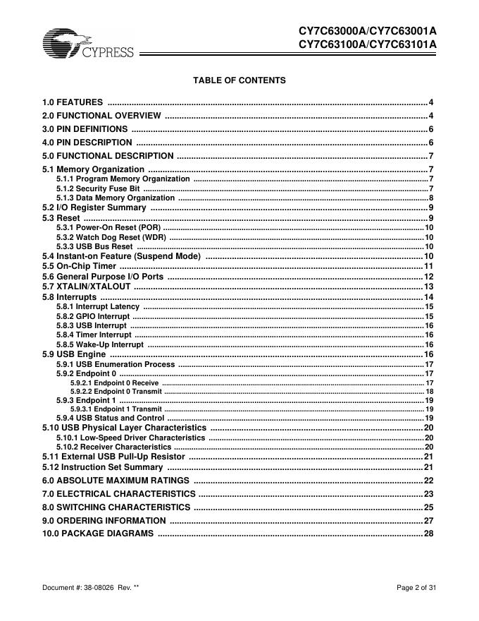 CYPRESS CY7C63000A/CY7C63001A CY7C63100A/CY7C63101A 数据手册.pdf
