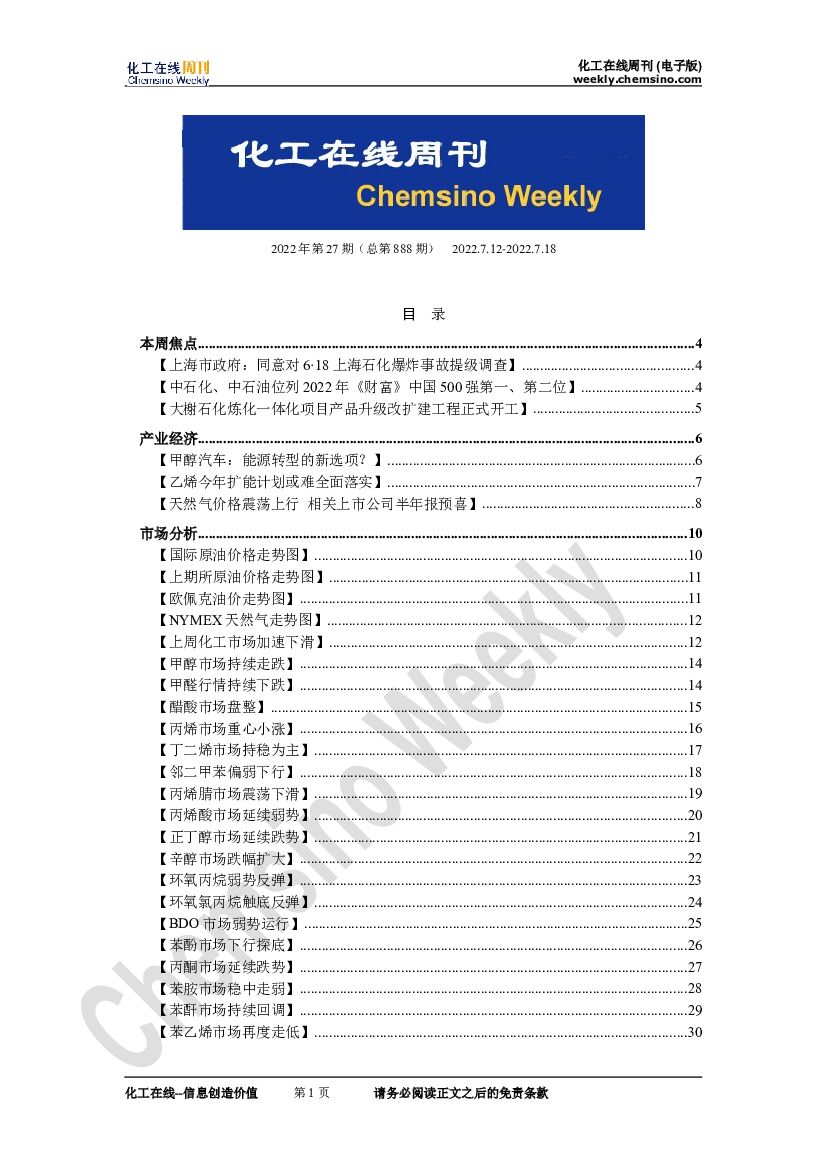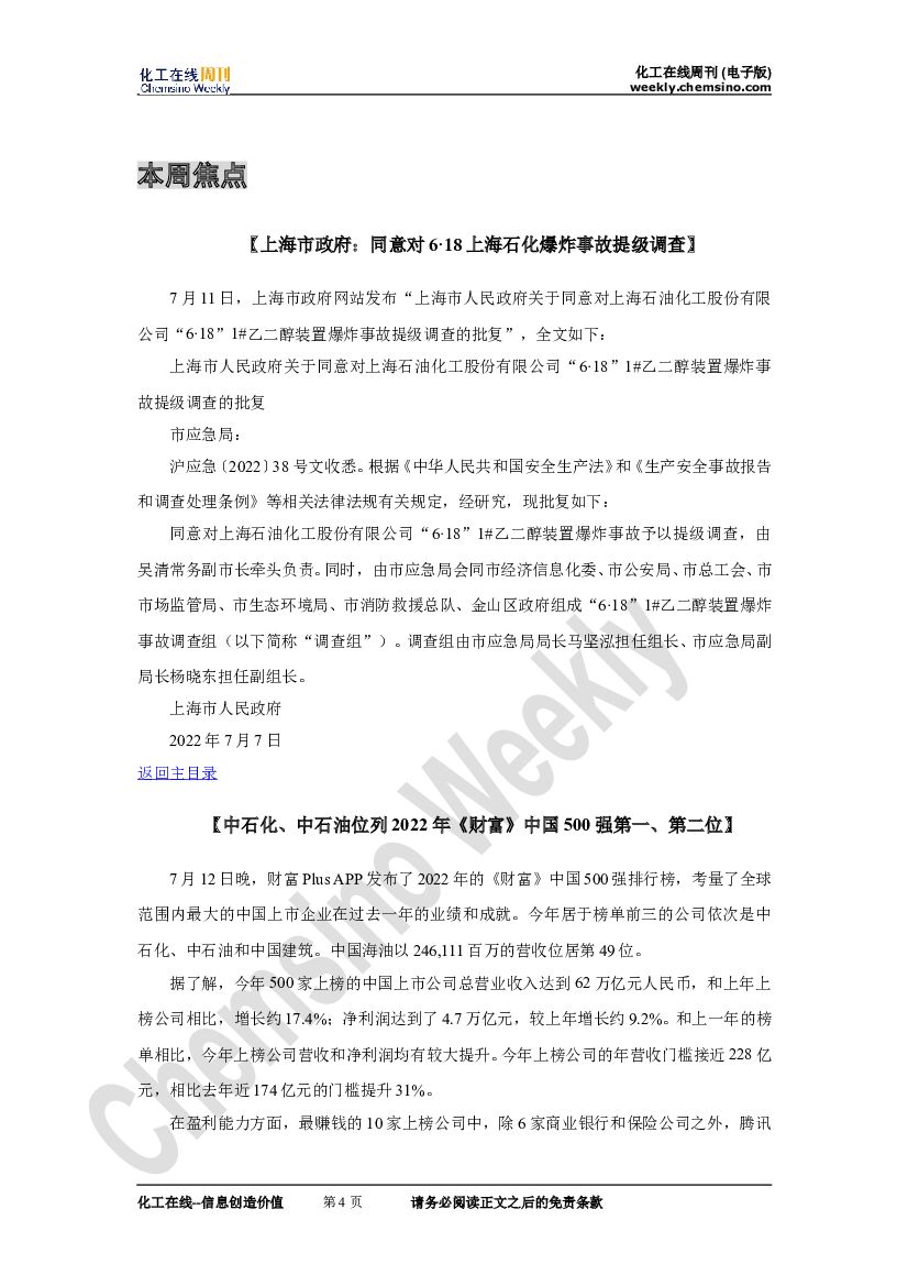化工在线周刊2022年第27期(总第888期).doc