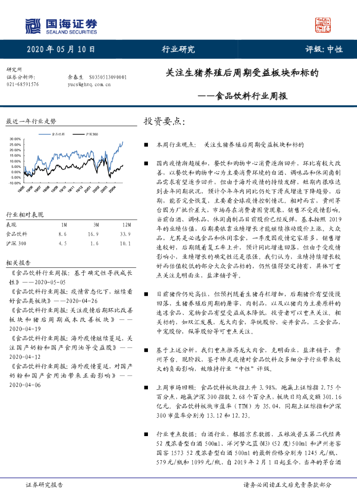 国海证券:食品饮料行业周报:关注生猪养殖后周期受益板块和标的.pdf