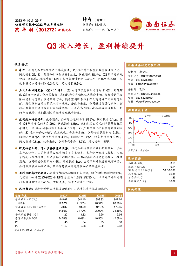 西南证券:英华特(301272)-2023年三季报点评:Q3收入增长,盈利持续提升.pdf