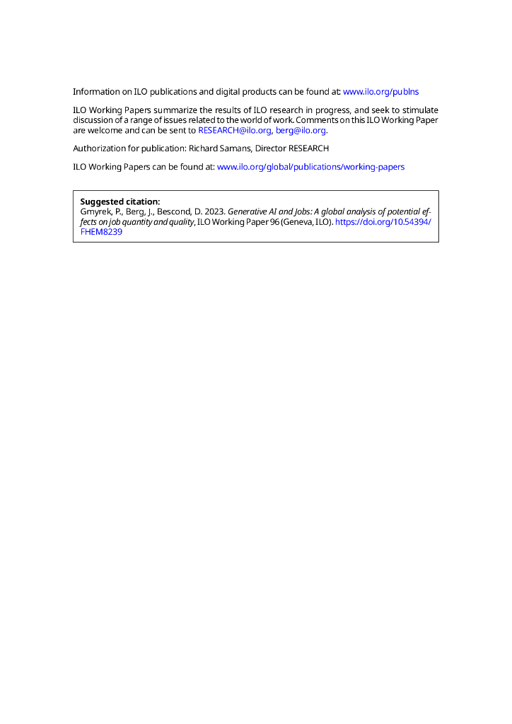 国际劳工组织:ChatGPT等生成式AI能增强就业,不会取代岗位(英文版).pdf