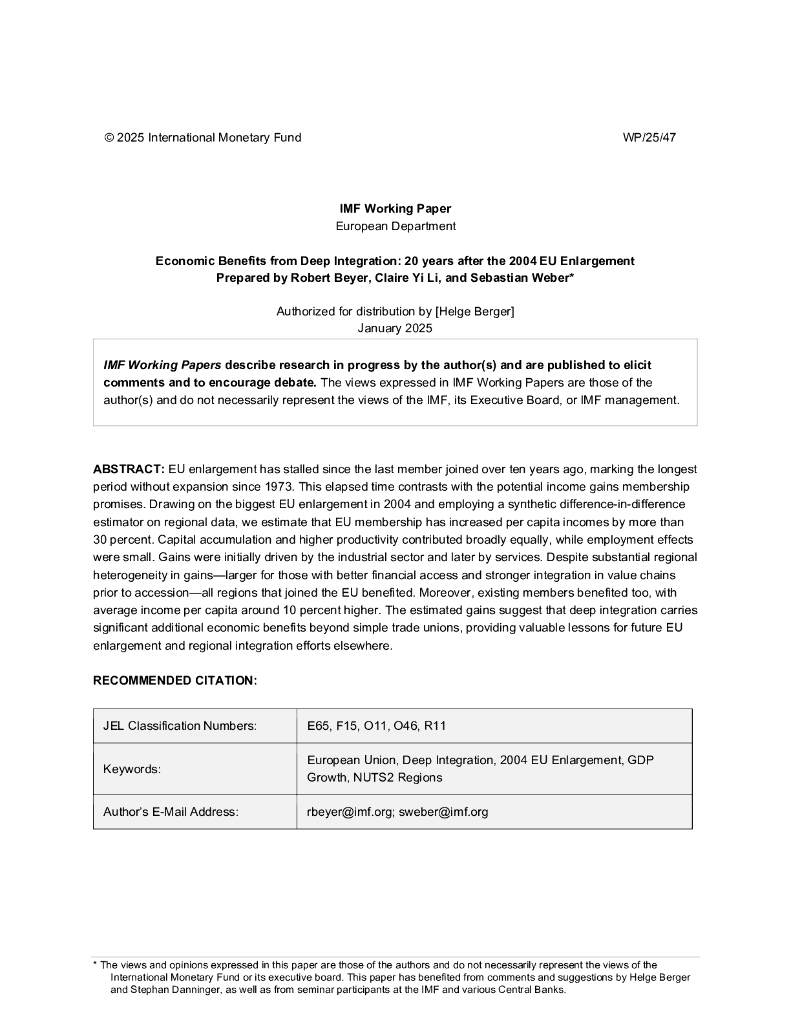 国际货币基金组织:深度一体化的经济效益:2004年欧盟扩大20年后(英文版).pdf