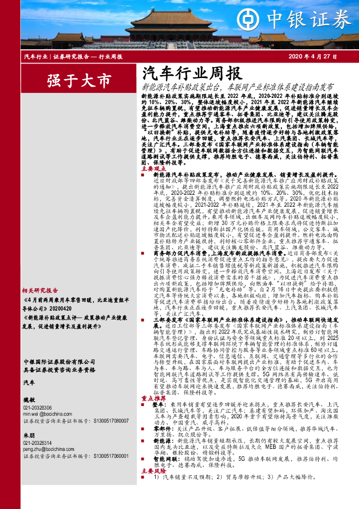 中银证券:汽车行业周报:新能源汽车补贴政策出台,车联网产业标准体系建设指南发布.pdf