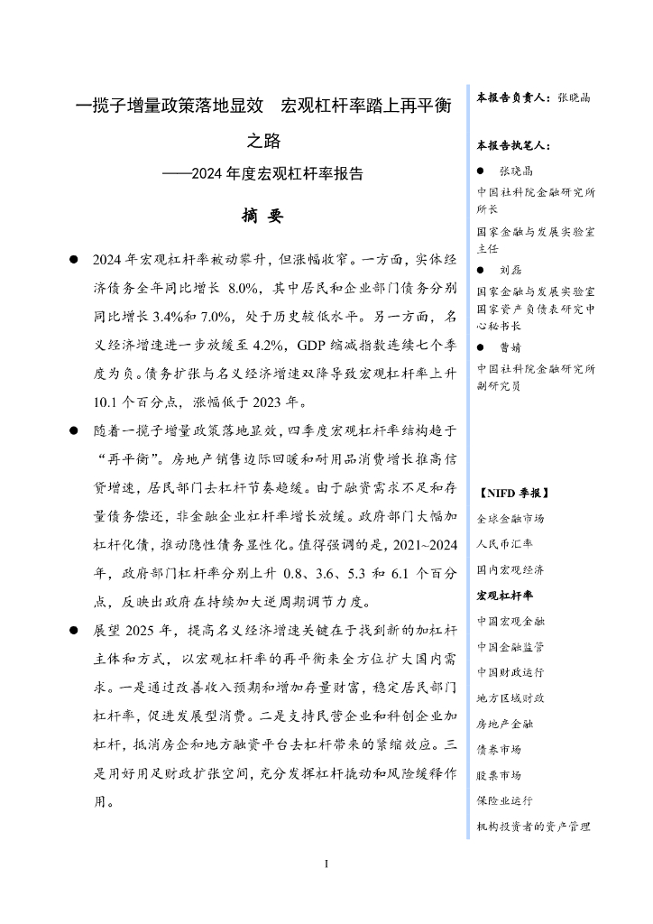 NIFD季报:揽子增量政策落地显效 宏观杠杆率踏上再平衡之路——2024年度宏观杠杆率.pdf