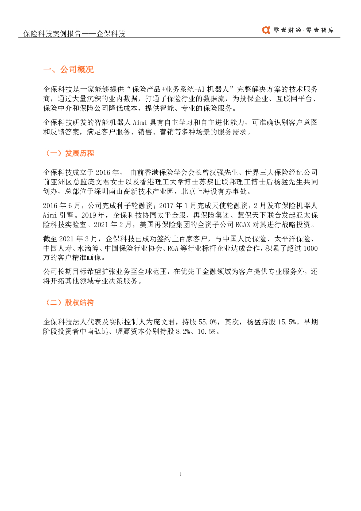 零壹保险科技案例报告​:AI+NLP智慧保险机器人提供商—企保科技.pdf