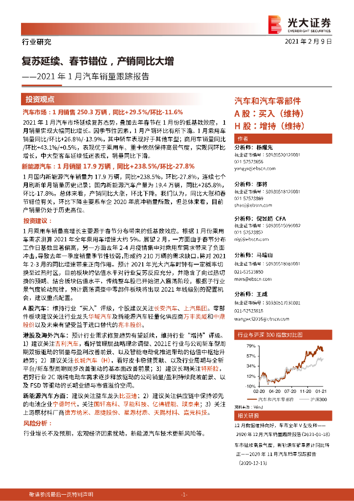 光大证券:2021年1月汽车销量跟踪报告:复苏延续、春节错位,产销同比大增.pdf