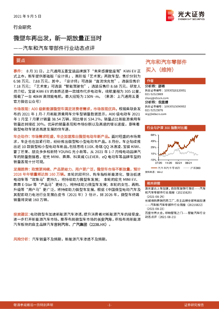 光大证券:汽车和汽车零部件行业动态点评:微型车再出发,新一期放量正当时.pdf