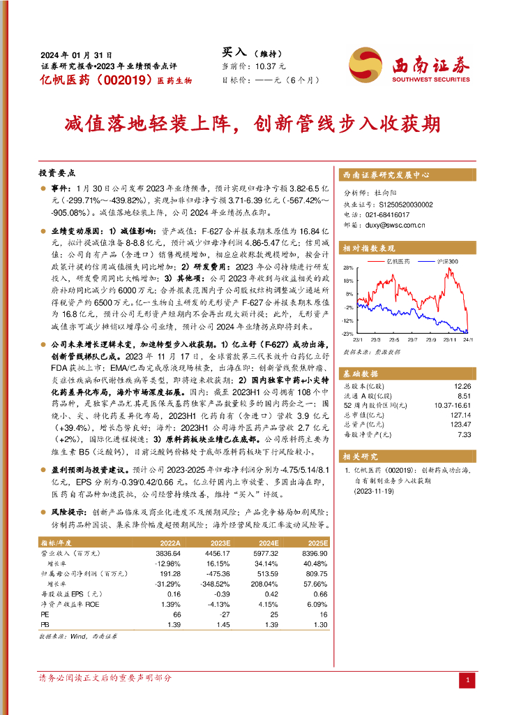 西南证券:亿帆医药(002019)-减值落地轻装上阵,创新管线步入收获期.pdf