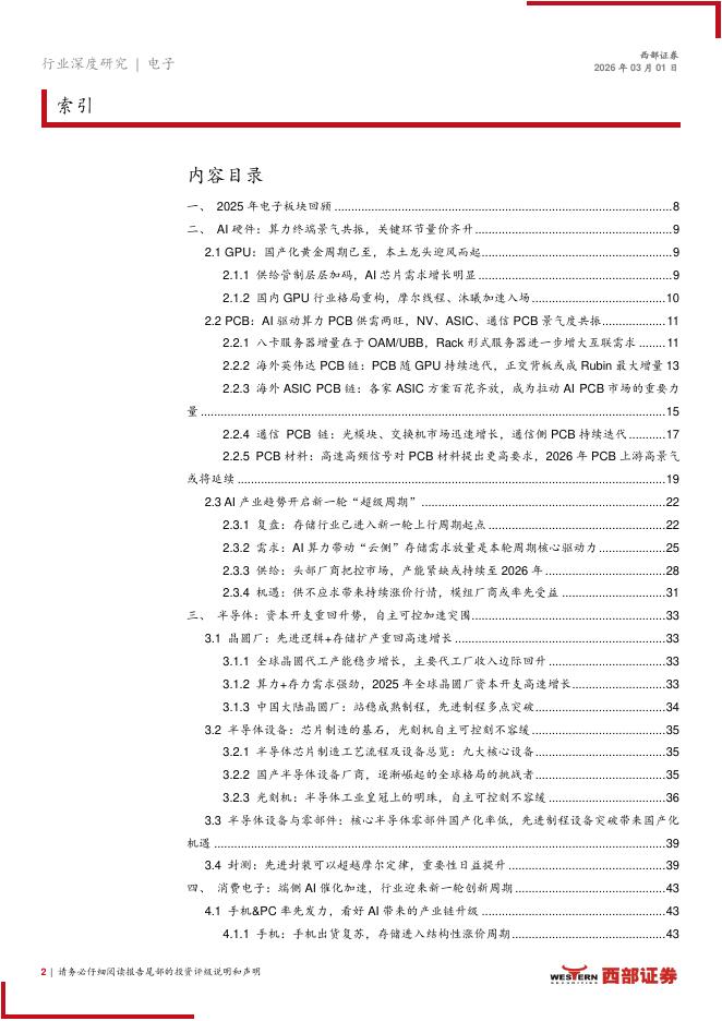 西部证券:2026年电子行业年度策略:端云算力同频共振,自主可控步履铿锵.pdf