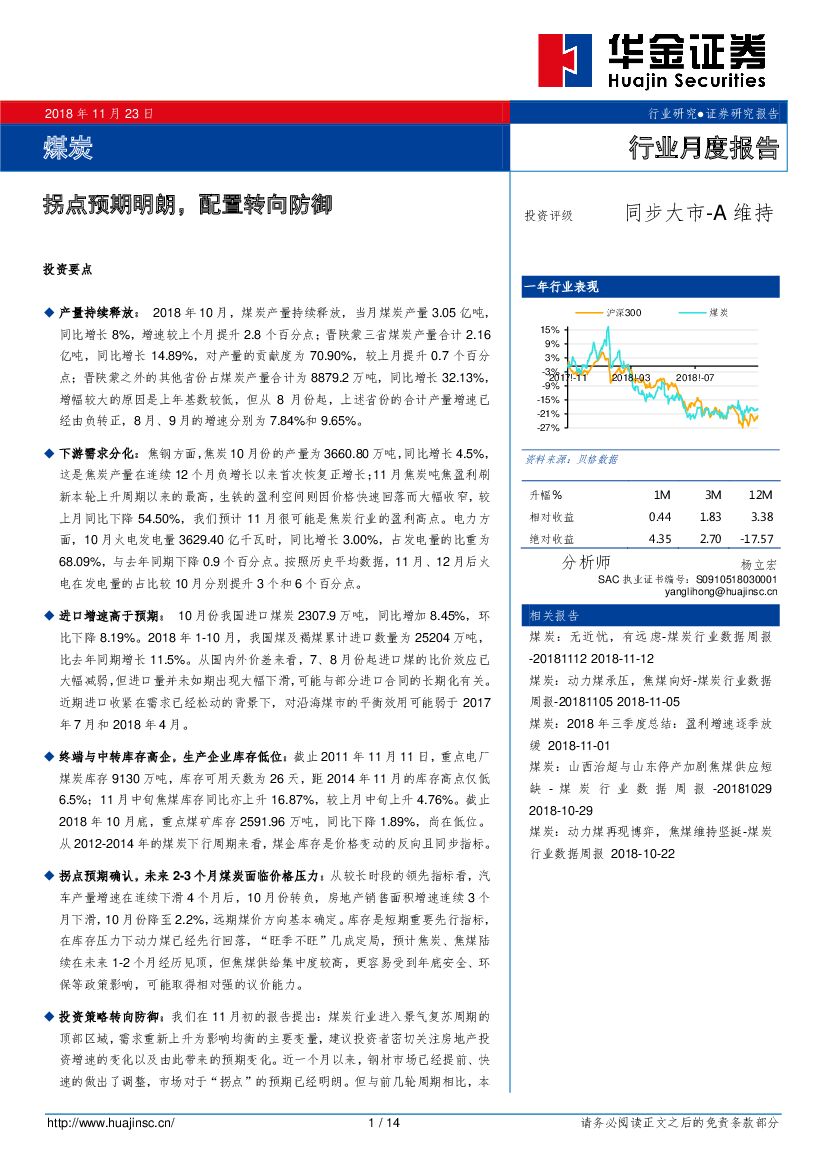 华金证券:煤炭行业月度报告:拐点预期明朗,配置转向防御.pdf