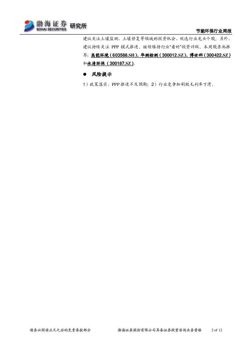 渤海证券:节能环保行业周报:土壤污染防治法草案征意稿出台,利好土壤治理长远发展.pdf