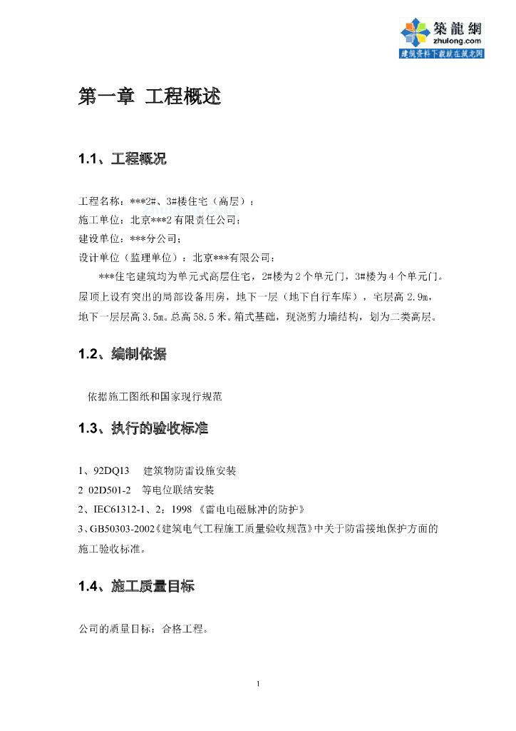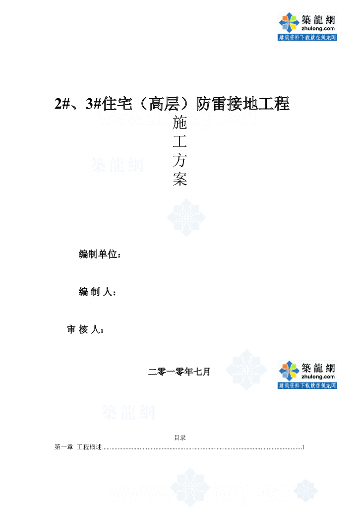 高层住宅楼防雷接地工程施工方案.doc