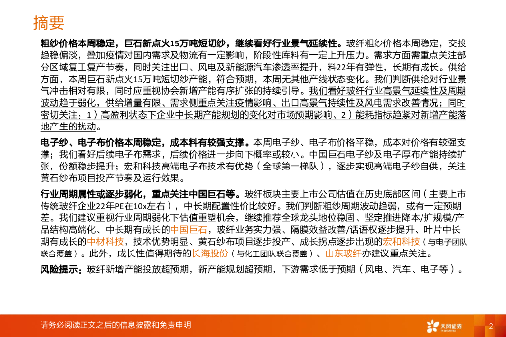天风证券:建筑材料:玻纤周跟踪:本周价格稳定,巨石新点火15万吨短切纱.pdf