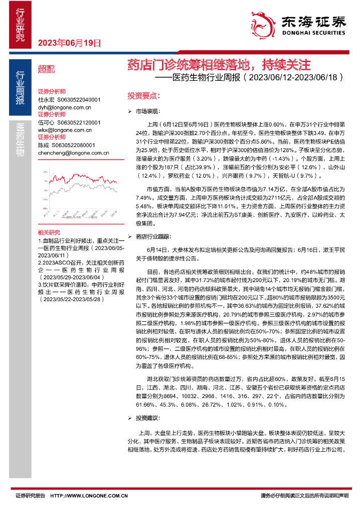 东海证券:医药生物行业周报:药店门诊统筹相继落地,持续关注.pdf