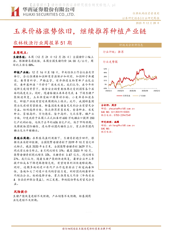华西证券:农林牧渔行业周报第51期:玉米价格涨势依旧,继续推荐种植产业链.pdf