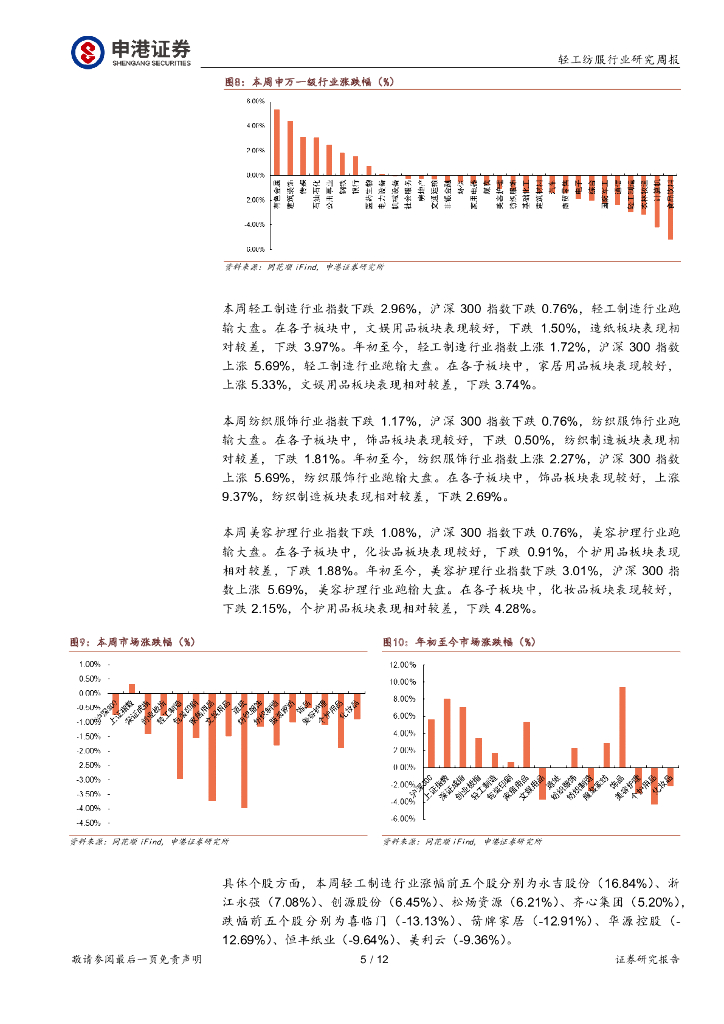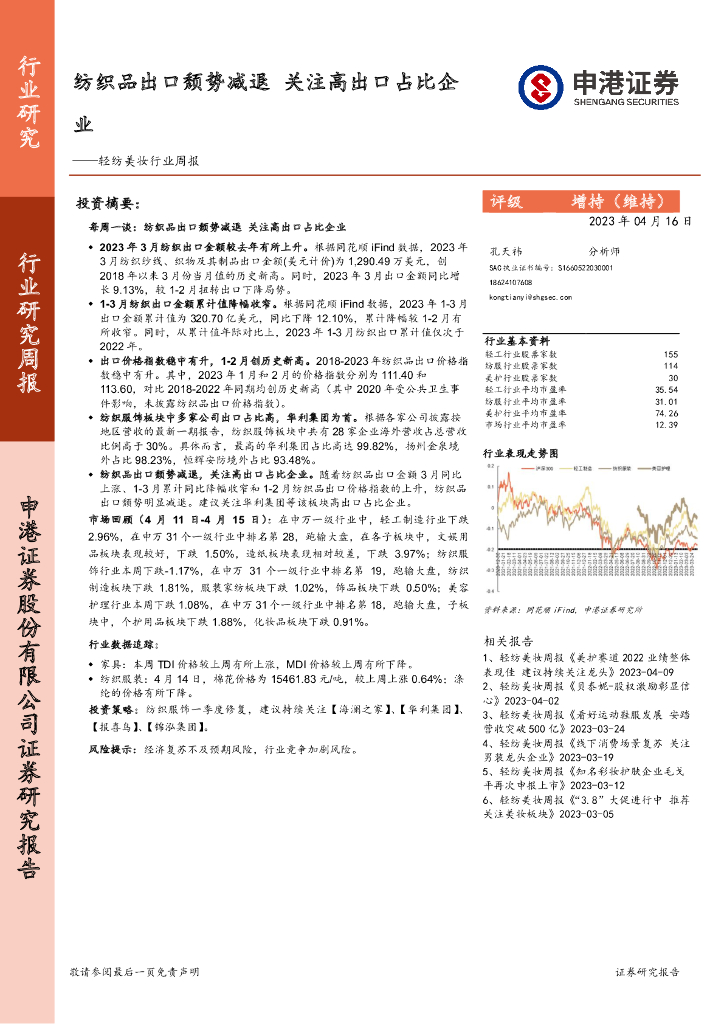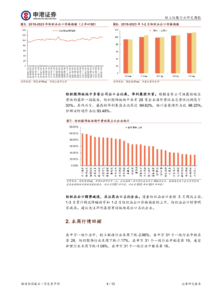 申港证券:轻纺美妆行业周报:纺织品出口颓势减退 关注高出口占比企业.pdf